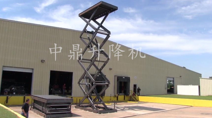 定制剪叉式舉升機(jī),帶有四組垂直堆疊的剪叉,以滿足行駛高度的要求。升降機(jī)是坑式安裝并永久固定在地板上,以保持結(jié)構(gòu)穩(wěn)定。該設(shè)備可選配增
